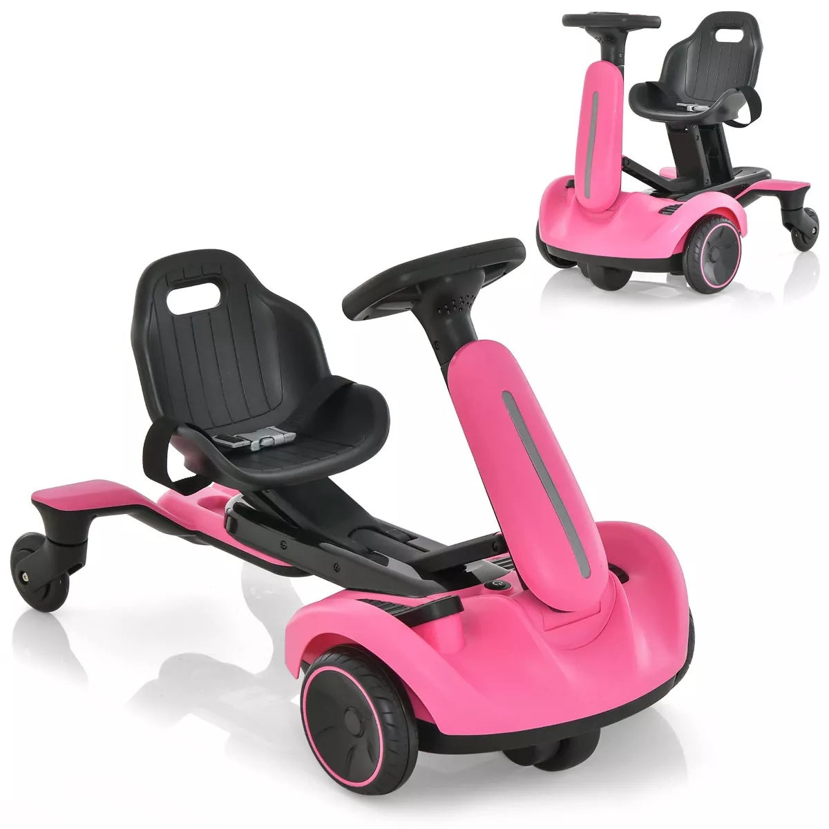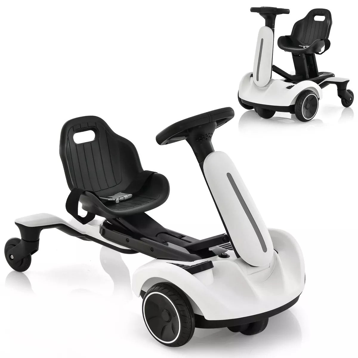 2 universal wheels + 1 drive wheel for 360° spins and easy turns; 2 side wheels prevent tipping—safe thrills!