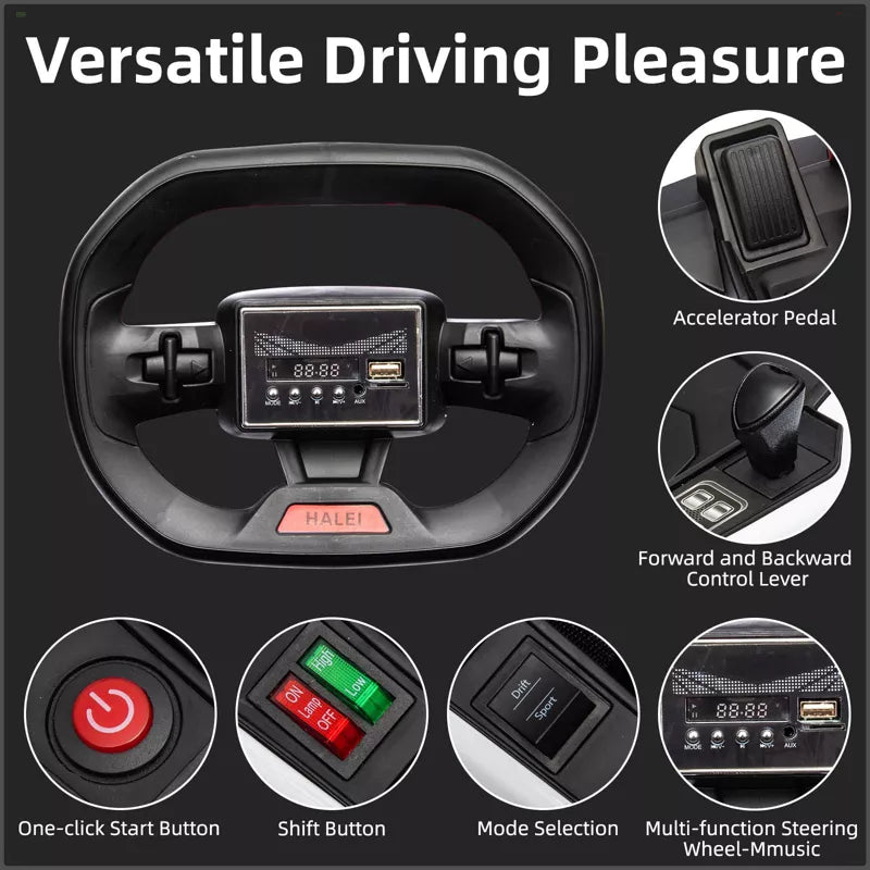 24V kart with music, one-button start, USB port, high/low gear, and MP3 player – richer driving joy!